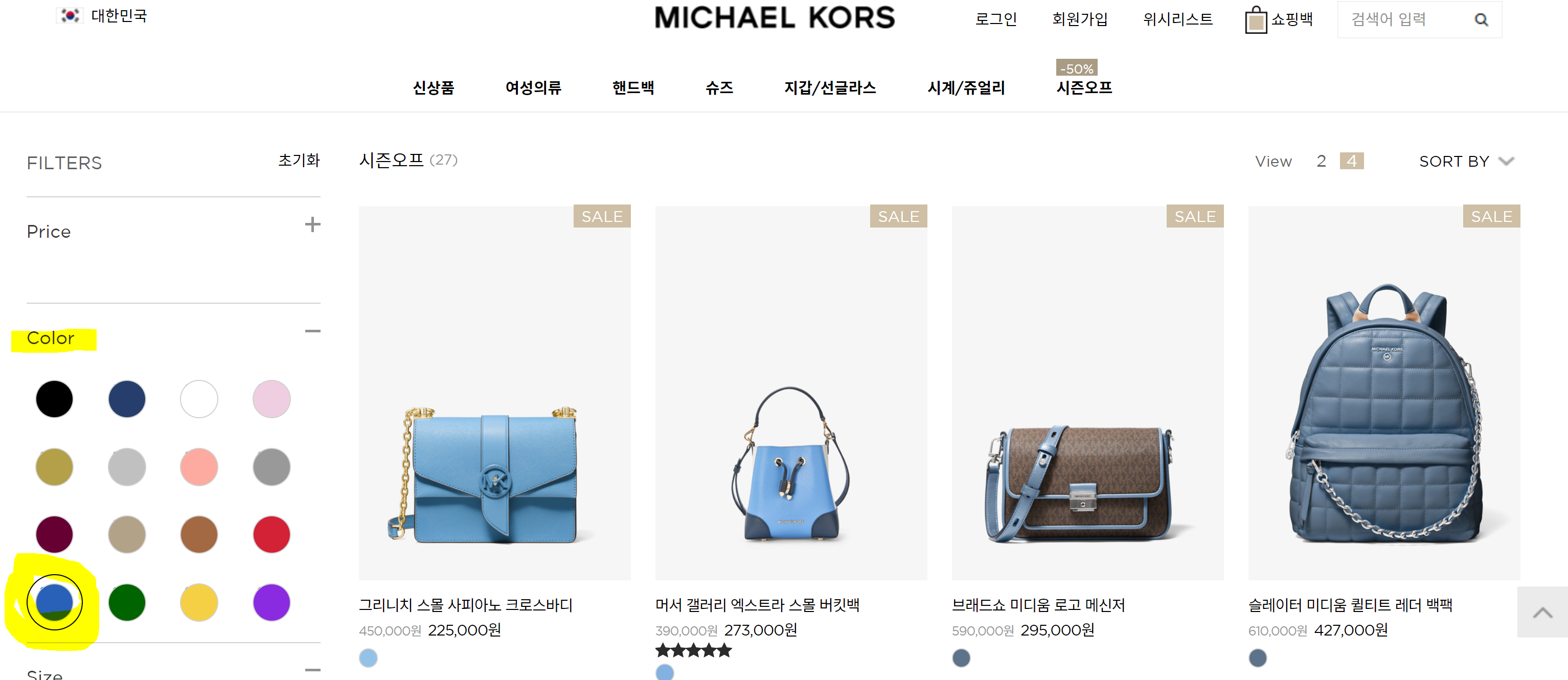 마이클코어스 공식홈페이지 확인했을 때, 공홈에서는 아울렛상품은 판매하지 않더라구요 ㅠㅠ